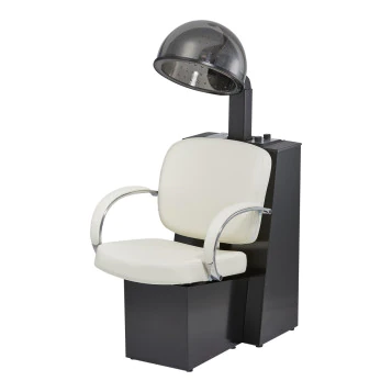 DescriptionThe Aria Dryer and Chair Combo includes a modern European design dryer chair and our number one selling dryer in one unit. The dryer chair has a wood frame for great durability and an extra wide seat to fit your largest clients. The square design and clean lines of this dryer chair will add style to any salon or spa. The dryer slides easily into the back of the chair for easy use and there is no assembly required as this comes to you ready to go! The dryer is a 980-watt salon hair dryer manufactured in the USA and complete with a timer and 4 setting temperature control. The dryer is UL and CSA approved and rated at 8 - 8.5 Amps. This unit is a perfect complement to the Aria Styling Chair for great design continuity.