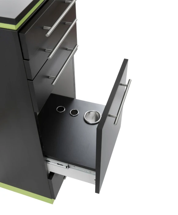 DescriptionThe Bali Double Styling Station is Made 100% in the U.S.A. and is available in 20 popular laminates with any two-tone color combination. This deluxe double sided station was designed with style and functionality in mind and features two full length mirrors, an oversized backboard and two Bali Tall Styling Stations. Each styling cabinet features a pull-out bread board, scissor drawer, two utility drawers and a slide out tool panel with customizable appliance holders. The innovative modern design coupled with unmatched functionality will make both your stylists and customers fall in love with the Bali Double Sided Station! Please call our sales team at (800) 477-6655 for color and customizing options