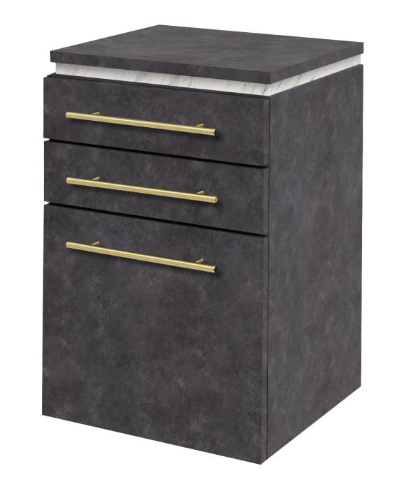 - Full Extension Glides & Brushed Metal Pulls