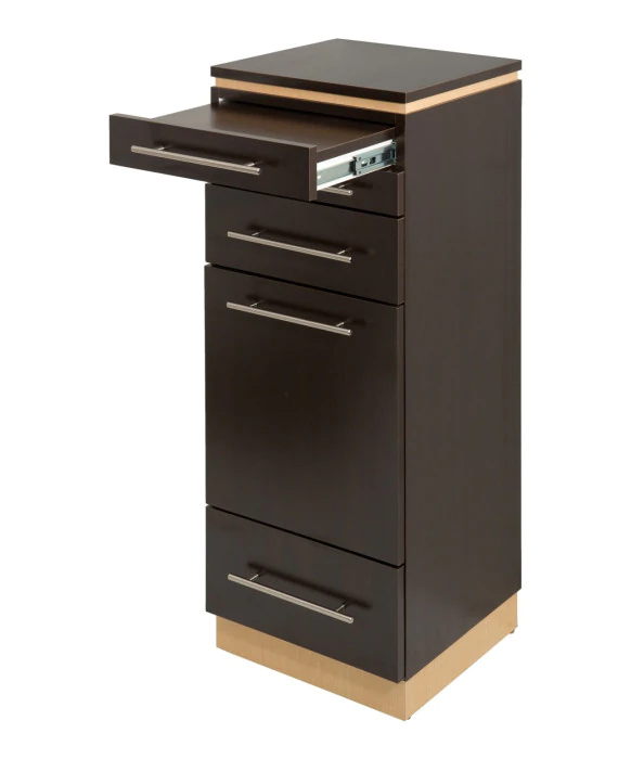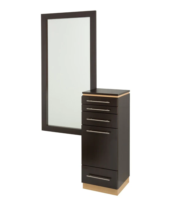 DescriptionThe Bali Tall Styling Station is 100% Made in the U.S.A. to enhance its quality while also supporting local Americans who share our passion for American craftmanship. The Bali Tall Styling Station is available in more than 40 popular laminates with any two-tone color combination. This free standing salon styling station stands conveniently next to any mirror of your choice and features a pull-out breadboard, a top scissor drawer, and two utility drawers. The Bali Tall Styling Station also features a slide-out tool panel with appliance holders to accommodate your blow dryer and curling irons. For functionality and longevity, this styling station ships to you fully assembled and each drawer is outfitted with full extension glides and luxurious brushed metal handles. *Please allow 6 - 8 Weeks for shipment of colors other than Black & White. **Optional Matching Iso Mirror & Frame Available (Sold Separately)**