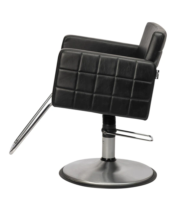 DescriptionThe Belvedere Maletti Nova Styling Chair is Made 100% in North America and is exclusively available only at Buy-Rite! This styling chair was designed with quality and durability in mind as it is built to last in the busiest and toughest salon environments. The Nova Styling Chair features a smooth interior vinyl surface that is perfectly complimented by an eye-catching quilted stitch pattern on the exterior arm and back cushions. The smooth vinyl interior, as well as the small openings between the seat and back cushions, make this chair incredibly easy to clean. This styling chair features an extra-wide seat to keep even your largest customers comfortable and a low backrest which is great when cutting longer hair. The Nova Styling Chair is available for quick ship in black vinyl and brushed chrome base but is also available in more than 80 vibrant vinyl colors to perfectly match the décor of your salon or spa. Additionally, the Nova Styling Chair comes complete on a 23” brushed chrome base but it is also available on a painted black base by special order. If you are looking for a styling chair with great style that can also be the workhorse in any salon, then the Nova Styling Chair is the one for you! *Please allow 10 - 12 weeks for shipment of colors other than Black or those selecting the painted black base option.