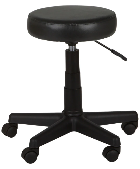 DescriptionThe Black Round Stool is a fully adjustable multi-purpose technician stool. This stool is perfect for any manicurist, esthetician or stylist as it sits atop heavy-duty casters for ease of mobility. For added comfort, the black technician stool has a one-piece high-density foam seat cushion that is extremely durable.