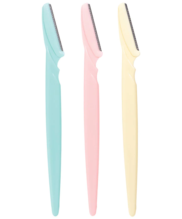 DescriptionPlastic eyebrow razors have sharp, stainless steel blades and are perfect for grooming and shaping eyebrows. Also great for removing unwanted hair from the lip, face, and bikini line. Pack of 3 colorful razors with protective covers. Includes (3) yellow, (3) blue, and (3) pink razors that each measure 6" long. Set of 12.