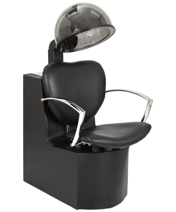 DescriptionThe Chea Dryer and Chair Combo includes a modern European design metal arm dryer chair with our #1 selling dryer in one unit. The dryer chair has a wood frame for great durability and an extra wide seat to fit your largest clients. The arms on the dryer chair are metal and bring a stylish look to any salon. The dryer slides easily into the back of the chair for easy use. There is no assembly required as this comes to you ready to use. The dryer is a 980-watt salon hair dryer Manufactured in the USA and complete with a timer and 4 setting temperature control. The dryer is UL and CSA approved and rated at 8 - 8.5 Amps. This unit is a perfect complement to the Sylvia Styling Chair.