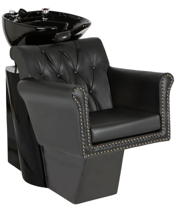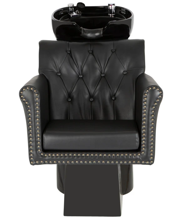 DescriptionThe Chelsea Backwash Unit is part of our “New York, New York” collection that presents a modern take on a classic style. The Chelsea’s tufted seat-back and exposed brass nail heads along the trim add an old-school glamour feel to any salon! This chair is also designed with a wide and tall seat-back and a soft foam-filled vinyl seat cushion to ensure your guests additional back & neck support while you shampoo. The seat cushion is also removable to make clean up between clients a breeze! This shampoo backwash unit comes complete with a tilting porcelain shampoo bowl with a European-style single handle faucet, shampoo hose, and a custom fitting neck rest for added comfort. For design & style continuity, we also carry the Chelsea Styling Chair and the Chelsea Dryer Chair!