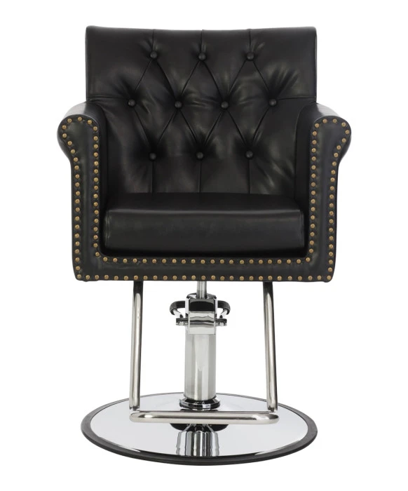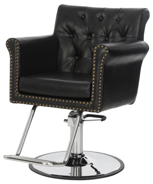 DescriptionThe Chelsea Styling Chair is part of our “New York, New York” collection that presents a modern take on a classic style. This chair’s button tufted seat-back, along with its brass nail head trim detailing add the old-school glamour feel to any space it consumes. The Chelsea Styling Chair has a wide and tall seatback that will be sure to give your clients additional back support offering a comfortable treatment each and every time. This styling chair also features soft foam-filled premium vinyl and a 3.5” thick removable seat cushion that makes clean up between clients extremely easy. The Chelsea looks great in black vinyl but it is also available in a modern gray vinyl that looks excellent on this chair as well. The base of the Chelsea Styling Chair is made up of a steel constructed hydraulic pump system that is available with multiple base options and is backed by a 2-year warranty on the hydraulic pump. Both of these features are sure to add that sense of security for your clients that will make them feel relaxed and at ease.