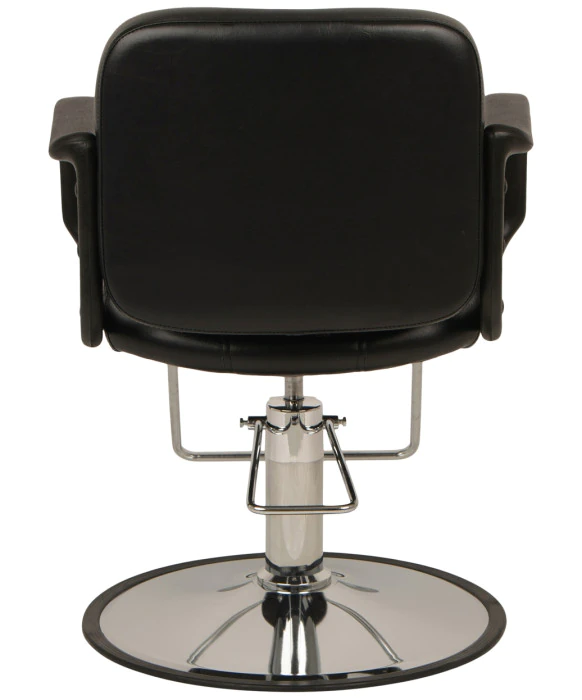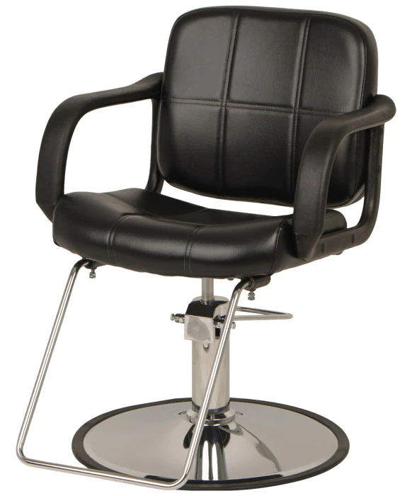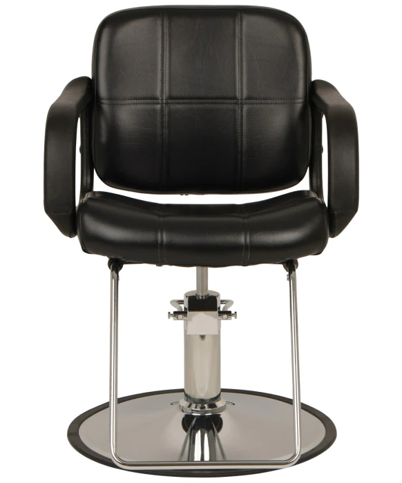 DescriptionThis affordable styling chair is a true salon classic. It is made with cushy high density foam polyurethane and features black cushions, black armrests, a chrome steel frame and a chrome stainless round base. The Chris Styling Chair comes on the heavy duty adjustable hydraulic pump, which makes adjusting any client easier. The styling chair also features an extra-wide seat with 360 degree swivel rotation. Perfect for use as a salon chair, styling chair, barber chair, or tattoo chair.