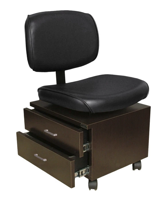 DescriptionThe Collins 2510 QSE Pedi-Stool is made 100% in the U.S.A, providing you with superior unmatched quality. The QSE Pedi-Stool features a comfortably padded upholstered seat and back for ultimate comfort and support. For extra convenience, the Pedi-stool provides plenty of storage room below the seat with 2 Full Extension Drawers. It also comes equipped with twin-wheel casters that allow for effortless mobility. The Collins QSE Pedi-Stool is customizable with a variety of Vinyl and Laminate Colors making it an easy fit for any salon or spa. *Please allow additional lead time for shipment of special upcharge vinyls and laminates.