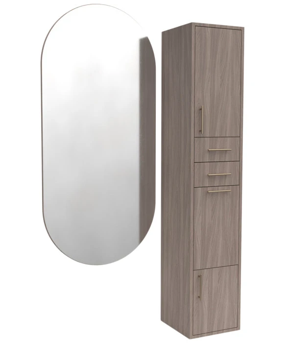 DescriptionThe Enclosed Formula Tower by Collins is both ultra-sleek and highly functional. This versatile tower features a convenient tool panel—available in tip-out or pull-out drawer configurations—with a built-in 6-outlet power strip, reducing clutter while keeping styling tools within arm’s reach. With two full-extension drawers and spacious upper and lower cabinets, this tower provides ample concealed storage for all your styling needs. Proudly made in the USA, the Enclosed Formula Tower is a striking yet practical addition to any salon space. ** Mirror Sold Separately **