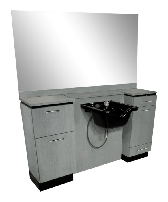 DescriptionThe Neo Barber Station by Collins is made 100% in the USA, and as with all Collins equipment, is built to the highest standard found in the salon equipment industry. This barber shop essential includes a wall-mounted 36” x 72” mirror, full-width 3” high backsplash, and bread-board pullout for additional work area. This barber station also provides you with a fully-equipped tool panel, two drawers, and a utility cabinet with tilt-out storage for clean towels and a tilt-out soiled towel hamper (hamper included.) The Neo ‘s drawers and cabinets are all adorned with contemporary metal bar pulls, and this unit also features a shampoo bowl bulkhead with a SHORT lift-lid and concealed bottle well. *Please allow additional lead time for shipment of special upcharge laminates and note that the CB19 shampoo bowl as pictured, is sold separately.