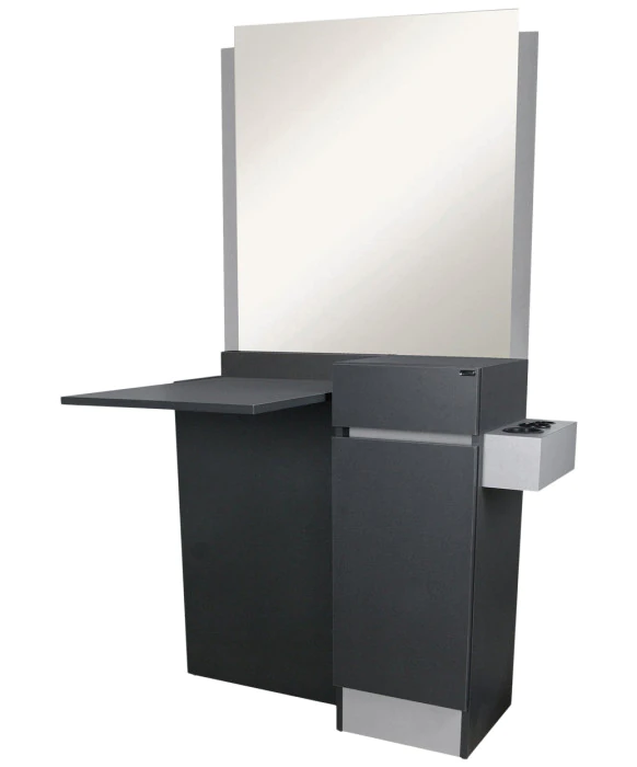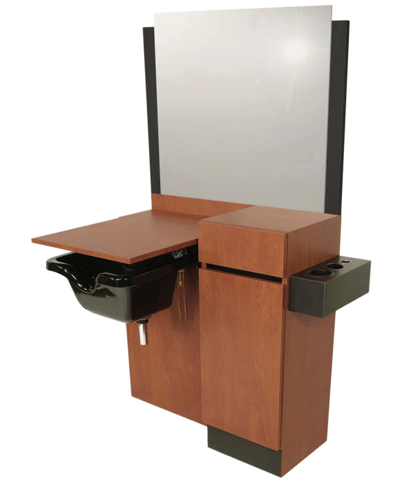 DescriptionThe Collins QSE 479-44 Reve 44" Wet Station is made 100% in the USA, which guarantees exceptional quality that is unmatched in the salon industry. This fully equipped wet station is built with convenience in mind and boasts a 36” x 36” mirror and side mounted tool holders with space for one blow-dryer and two styling irons. The Reve also offers a full-extension drawer and storage cabinet with shelf, a shampoo bulkhead with a recessed bottle well and a lift lid to give you a work space when the bowl is not in use. The Reve is available in your choice of more than 50 laminate colors, and for style and design continuity, we carry the entire line by Collins! *Please allow additional lead time for shipment of special upcharge laminates.