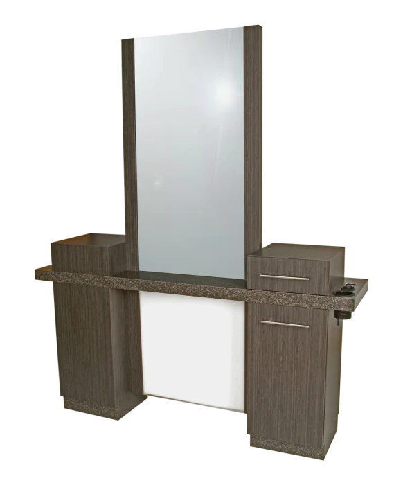 DescriptionThe Alta Back-to-Back Styling Island by Collins is made 100% in the U.S.A. and as with all Collins' equipment, it is designed and built with top of the line quality and craftsmanship. The Alta Back-to-Back Styling Island is made for TWO Stylists and features mirrors, ledges and Plexiglas accents as pictured. Each station comes equipped with a drawer, storage cabinet with adjustable shelf, tool panel with quad electrical and holders for blow dryer, flat iron, and curling iron. We also have the Alta Back-to-Back Formula Styling Station, Alta Formula Styling Station, Alta Styling Vanity w/ Mirror, Alta A-Tall Styling Station w/ Mirror, Alta B-Tall styling Station w/ Mirror and the Alta Reception Desk to furnish your entire salon!