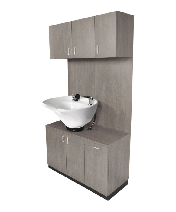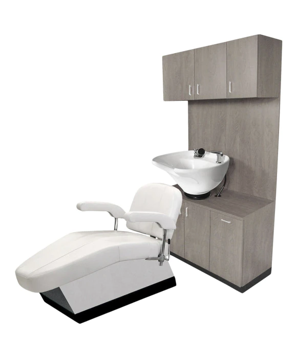 DescriptionThe Collins 638-42 TSB 42” Side-Wash Shampoo Station is made 100% in the U.S.A, offering superior quality that is unmatched in the salon equipment industry. The Side Wash Shampoo Station features a full width backsplash with a durable porcelain tilting bowl, sitting on top of a space-saving cabinet and storage. Store extra clean towels in the overhead towel cabinet and toss out your dirty towels with the tip-out soiled towel bin. Plenty of storage and convenience, all in one station. Personalize your station by choosing from over 40+ laminate colors. The Collins 638-42 TSB 42” Side-Wash Shampoo Station comes with a 1-year warranty.