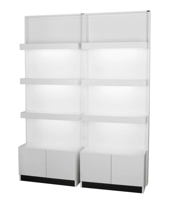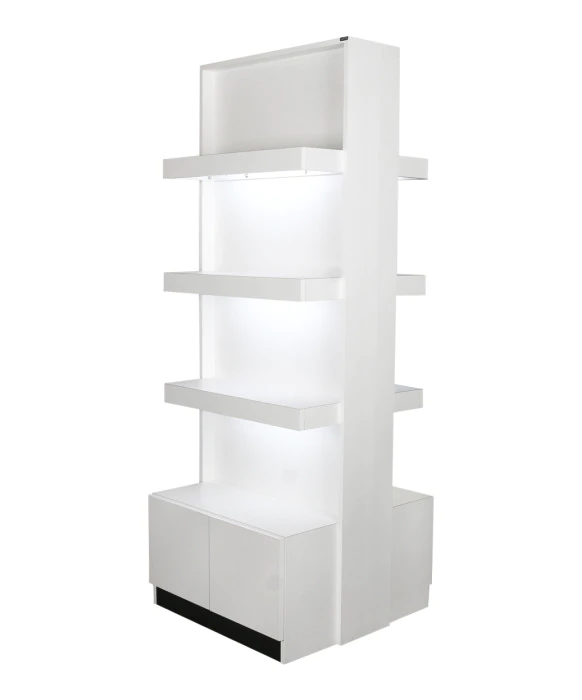 DescriptionNew for 2016, the Zada Retail Display w/ Storage and T5 Lights by Collins is made 100% in the U.S.A, offering superior quality that is unmatched in the salon equipment industry. This sleek retail display is perfect for any modern salon décor, and features 3 shelves, as well as two cabinets in the base for extra storage. We also carry the Zada Styling Vanity & Mirror w/ LED Lights, Zada Formula Styling Station w/ LED Lights, Zada Back-to-Back Formula Styling Station w/ LED Lights, Zada Retail Light Box, Zada Stacked Retail Display w/ Lights, Zada Backlit Retail Display w/ LED Lights, and the Zada Set of 3 Nesting Retail Tables to furnish your entire salon! Pictured as a single and double unit but priced only as a single unit at 32" wide.