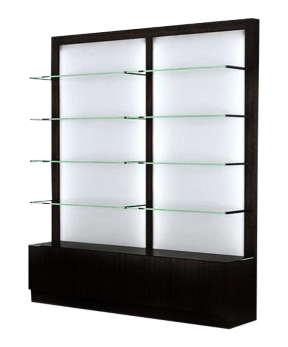 DescriptionNew for 2016, the Zada Backlit Retail Display w/ LED Lights is made 100% in the U.S.A. by Collins, guaranteeing you the utmost quality and craftsmanship in the salon equipment industry. Draw attention to your selection of retail products with this glowing back-lit display and 3/8" tempered glass shelves. The base includes two cabinets for extra storage. We also carry the Zada Styling Vanity & Mirror w/ LED Lights, the Zada Formula Styling Station w/ LED Lights, the Zada Back-to-Back Formula Styling Station w/ LED Lights, the Zada Retail Light Box, the Zada Stacked Retail Display w/ Lights, the Zada Retail Display w/ Lights & Storage, and the Zada Set of 3 Nesting Retail Tables to furnish your entire salon! Priced as a single 32" W unit but can be used in larger sizes by aligning multiple units side by side as shown in the second image.