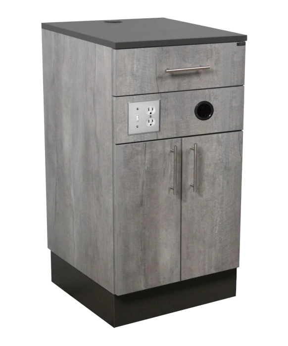 DescriptionThe Collins 6818-20 Lacarte Vacuum Cabinet is made 100% in the U.S.A and is designed to bring you the best quality in craftsmanship in the salon equipment industry. The vacuum cabinet, which conceals your salon vacuum system, also features a duplex outlet and switch mounted to the face of the cabinet with grommet for vacuum hose to pass through. The switch is wired to the interior mounted duplex, which is where you plug the vacuum into (*Wiring by a professional electrician onsite*) This unit also comes with a full width/full extension drawer for tools so you can maximize your storage. The Lacarte Vacuum Cabinet is available in over 40 laminate colors, ships fully assembled and comes with a 1- year warranty. * Vacuum or Mini Shop Vac is not included.*