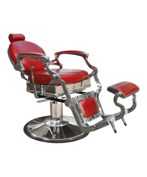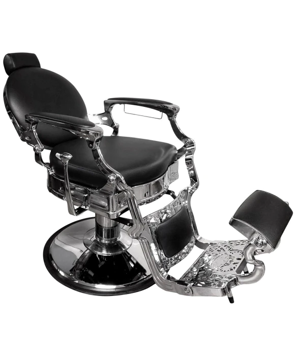 DescriptionThe Princeton Barber Chair by Collins Manufacturing perfectly captures the look and feel of an antique barber chair while also offering great quality and durability. Each Princeton Barber Chair features a highly detailed all-metal frame, arms, footrest, and base with a bright polished finish, gas cylinder controlled reclining back, adjustable-removable headrest, kick-out footrest, and roll-over calf pad for shaves. The Princeton arms and kick-out footrest work in-sync with the reclining back; recline lever on right as shown. This barber chair is extremely durable and features a five year warranty on the hydraulic base and gas cylinder. The Princeton Barber Chair is part of the Collins Manufacturing barber chair family and is available for quick-ship in Black Vinyl but can be upholstered in any of the Collins vinyl selections to perfectly match your shops style & decor'. *Please allow 5 - 6 weeks for shipment of colors other than Black Stock vinyl.