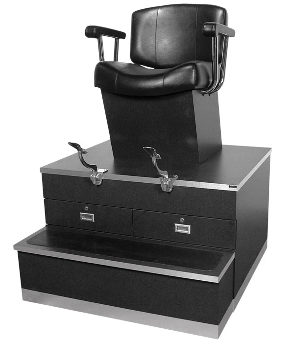 DescriptionThe Continental Shoe Shine Stand by Collins is made 100% in the USA, and guarantees the utmost quality found in the salon equipment industry. This shoe shine stand is sure to bring a touch of old-school class to any modern day barber shop. The Continental Shoe Shine Stand features a continental chair with polished cast-aluminum foot supports that can be removed for safe and easy entry and exit. This stand also comes with two locking drawers, and can be made in different vinyl and laminate color combinations, so ask your Buy-Rite Sales Representative today!