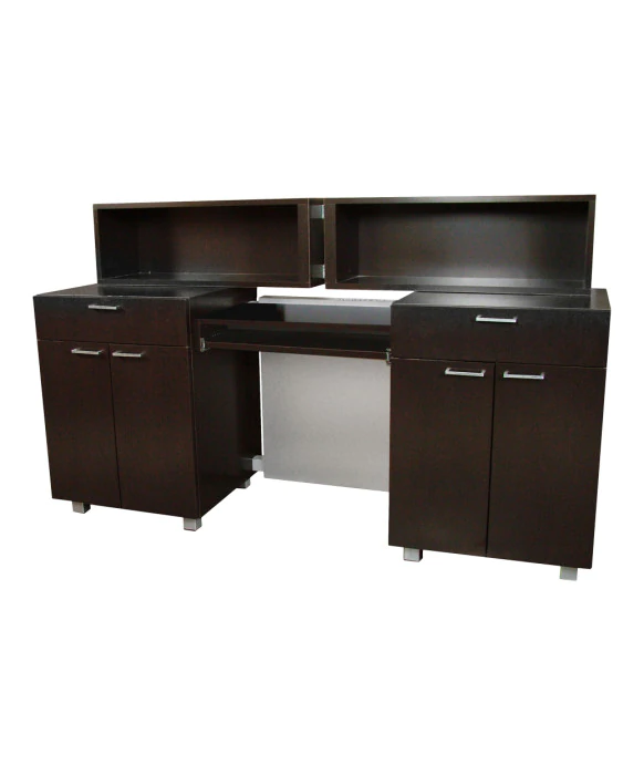DescriptionThe Amati Galileo Reception Desk by Collins is made 100% in the U.S.A. and as with all Collins' equipment, it is designed and built with top of the line quality and craftsmanship. The geometric styling of the Galileo Desk is an eye catcher and a favorite among salon owners. The desk comes equipped with one locking drawer with a cash till, one utility drawer, two storage cabinets with adjustable shelves, a pull-out keyboard tray, and ample work surface space. This unit comes with a five wire grommets with predetermined wire paths. See “Amati 931 Galileo Specifications” below to see the anticipated wire paths shown in “red.” This beautiful reception desk looks great on its own, but we also have the whole family of Amiati Products that can add continuity to your salon! This includes the Amati BC Portable Station, Amati FS Styling Station, Amati Wall-Mounted Mirror, Amati 360 Styling Station, Amati Bi-Level Styling Vanity, Amati Bi-Level Tall Styling Vanity, Amati Bi-Level Styling Vanity w/ Retail, Amati Back-to-Back Mirror Station, Amati Tall Back-to-Back Styling Island, Amati Retail Display Unit, Amati Amico Reception Desk, and the SO Amati Reception Desk to furnish your entire salon!