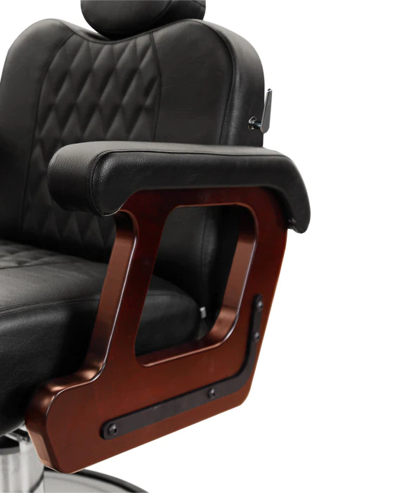 DescriptionThe B260 Commander Supreme Barber Chair w/ Calf Pad Legrest by Collins is made 100% in the U.S.A and features an industry best 7.5 year warranty on the 5550 hydraulic base and offers the highest level of quality and durability that you can find in the barber equipment industry. The Commander features a diamond pattern on the seat, back and leg cushions as well as real wood arms w/ padded upholstered rests. The cast aluminum footrest features a roll-over calf-pad for extreme comfort. The durable metal-to-metal construction includes 8 sets of ball-bearings for smooth operation and long-life, and the sealed hydraulic base includes an over-sized ultra-thick steel baseplate. The Commander Supreme Barber Chair is built to last, and ships fully assembled.