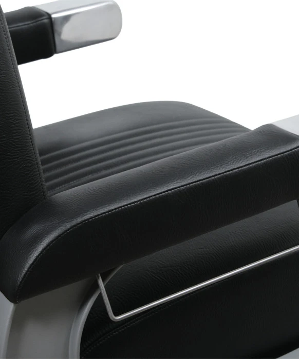 DescriptionThe B270 Cobalt Omega Barber Chair by Collins is made 100% in the U.S.A and features an industry best 7.5 year warranty on the 5550 hydraulic base and offers the highest level or quality and durability that you can find in the barber equipment industry. The durable metal-to-metal construction includes 8 sets of ball-bearings for smooth operation and long-life, and the sealed hydraulic base includes an over-sized ultra-hick steel baseplate. The Cobalt Omega Chair has long-lasting, polished, cast-aluminum end caps on the arms making it one of the most durable Barber Chairs. The Cobalt is built to last, and ships fully assembled.