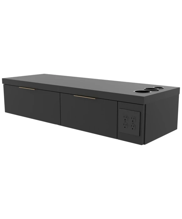 DescriptionThe Nico Wall-Mounted Station by Collins is where timeless style meets everyday functionality. Designed to maximize space, the Nico includes two full-extension drawers that offer ample concealed storage. A built-in four-plex power outlet and convenient countertop tool holders make it easy to keep essential styling tools within reach and ready to use. Its wall-mounted design and floating silhouette create visual interest while freeing up valuable floor space. Proudly made in the USA, the Nico Wall-Mounted Station features a durable laminate finish that is available in a wide selection of colors, allowing you to create a look that complements your salon’s unique aesthetic.