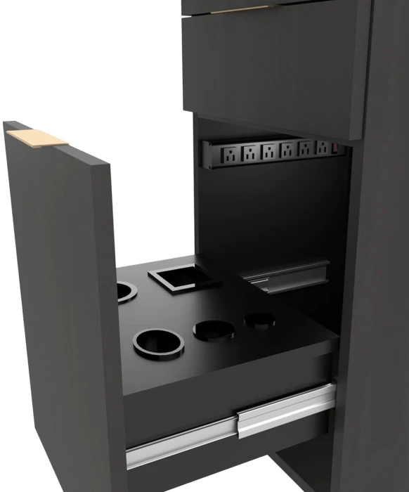 - Fully Equipped Tool Panel Drawer w/ Built-In Power Strip