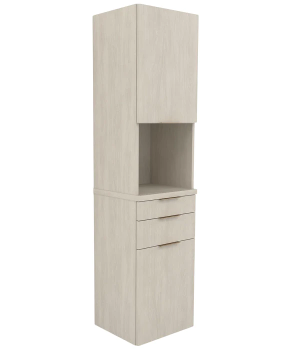 DescriptionThe Collins E1022 Aspen Floating Styling Tower Station is made 100% in the U.S.A. and offers the perfect combination of contemporary design and unmatched functionality. This modern styling station is wall mounted and features two storage drawers and a front pull out tool panel, making it easy to store supplies while being able to access them quickly. The upper tower offers a storage cabinet as well as an open working space in the midsection that is great for retail products or frequently used styling tools. The clean lines of this contemporary styling station combined with its functionality and sophisticated elegance make it a perfect addition to any salon, spa or barbershop. *Please allow 10 - 12 Weeks for shipment of special upcharge laminates.
