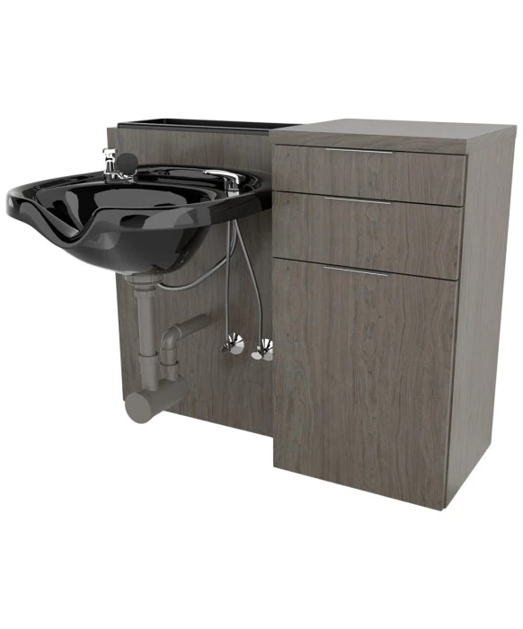 DescriptionThe Collins E1052 Aspen Floating Wet Station is made 100% in the U.S.A. and the design is simple, modern and a great fit with any décor. The Aspen Floating Wet Station is designed to efficiently manage your clientele by allowing the guest to conveniently stay in the same chair for shampooing and styling. This wet station features two full extension drawers, top access molded bottle well, and a full extension tool panel drawer. The pull out tool panel provides convenience and accessibility, the drawer storage helps you stay organized, and wall mounting allows you to free up floor space. Available in a wide selection of popular laminates and 3 color options for the metal drawer pulls, this modern styling station will enhance your salon, spa or barber shop and serve clients and staff for years to come. *Please allow 10 - 12 Weeks for shipment of special upcharge laminates. **Shampoo Bowl ordered separately