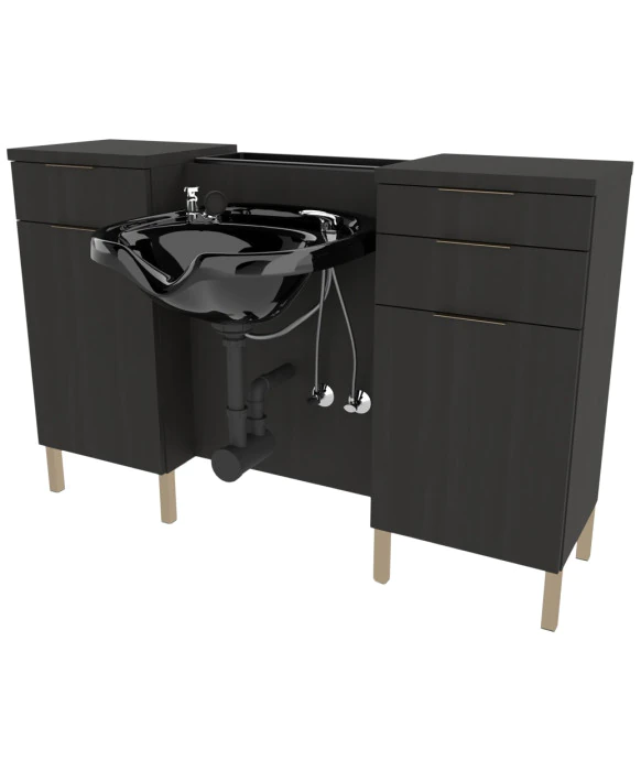 DescriptionThe Collins E1062P Aspen Wide Wet Station w/ Metal Legs is made 100% in the U.S.A. which guarantees exceptional quality that is unmatched in the salon industry. This stylish and functional station is free standing with metal legs and is a wider unit that offers more space for storage and organization, which makes it the perfect addition to any salon or barbershop. The Aspen Wide Wet Station w/ Metal Legs comes with three full extension drawers, a full extension tool panel drawer, top access molded bottle well, lower cabinet storage with adjustable shelf, and a convenient six-outlet power strip. This modern style wet station can be easily customized as it is available in a wide selection of popular laminate colors, 3 color options for metal drawer pulls and legs, and 2 color options for bowl (bowl sold separately). *Please allow 10 - 12 Weeks for shipment of special upcharge laminates. **Shampoo Bowl ordered separately