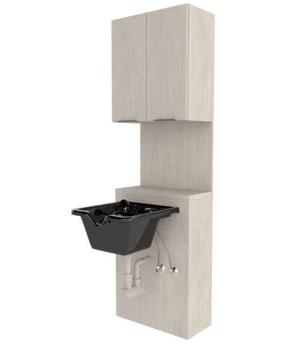 DescriptionThe Collins E1101-24 Essentials 24” Bulkhead is made in the U.S.A. and offers excellent quality and supreme functionality. This professional shampoo bulkhead features two upper cabinets with adjustable shelves, a full width backsplash and is built to accommodate any shampoo bowl of your choice. The Essentials 24" Bulkhead is a great option for any salon or spa with limited space that is looking to keep their shampoo area neat and organized. This shampoo cabinet is available in a large selection of popular laminate options as well as three color options for the metal cabinet pulls. This popular design is not limited to the 24” wide model as the essential bulkhead is also available in 42”, 45” and 48” widths . *Please allow 10 - 12 Weeks for shipment of special upcharge laminates. (Shampoo Bowl ordered separately)