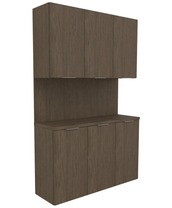 DescriptionThe Collins E1103-48 Aspen Floating Backbar w/ Storage is made 100% in the U.S.A. and is a stylish addition to any salon or spa, and instantly makes your space more efficient. Available in a wide selection of popular laminates, the Aspen Floating Backbar is wall-mounted freeing up floor space and providing ability to easily clean under the cabinet. This salon shampoo back bar features five storage cabinets w/ adjustable shelves, a full width/height backsplash, generous surface space perfect for frequently used supplies and a tip-out soiled towel bin cabinet in the lower right section. *Please allow 10 - 12 Weeks for shipment of special upcharge laminates.