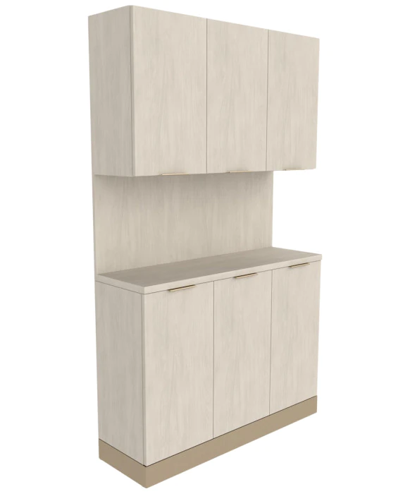 DescriptionThe Collins E1104P-48 Nico 48" Backbar w/ Storage & Metal Toe-Kick is 100% made in the U.S.A. and is a stylish addition to any salon or spa and instantly makes your space more efficient. Available in a wide selection of popular laminates, this salon shampoo backbar features five storage cabinets w/ adjustable shelves, a full width/height backsplash, generous surface space perfect for frequently used supplies, and a tip-out soiled towel bin cabinet in the lower right section. The Nico 48" salon backbar is also available with three color options for the metal cabinet pulls and the metal toe kick to offer a fully customizable design for any salon space. *Please allow 10 - 12 Weeks for shipment of special upcharge laminates.