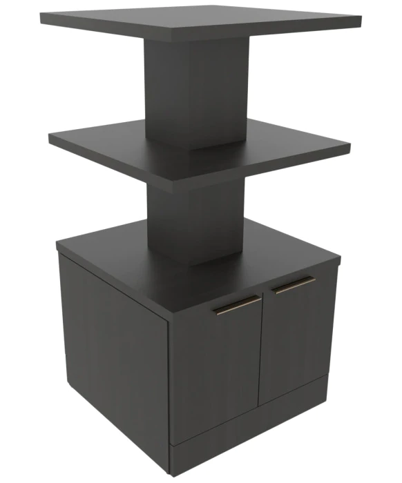 DescriptionThe Collins E1172 Nico Stacked Retail Display is made 100% in the U.S.A. providing great quality and durability unmatched in the salon equipment industry. The Nico Stacked Retail Display presents a small footprint making it perfect for compact spaces or it can be used for additional retail display for large areas. Highlight your products while keeping stock close at hand in the lower storage cabinet. Available in a large selection of popular laminates, the Nico Stacked Retail Display features a three-tiered display space with convenient access from all sides, a lower storage cabinet accessible on both sides and a finished toe-kick for a customized look. *Please allow 10 - 12 Weeks for shipment of special upcharge laminates.
