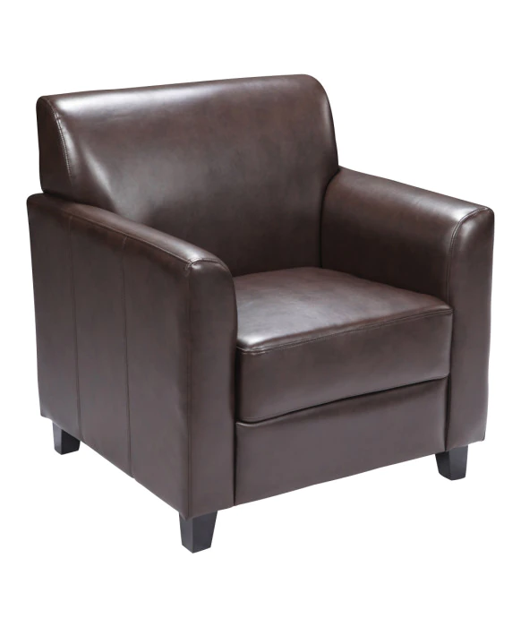 DescriptionThe Diplomat Collection by Flash Furniture brings you this distinguished arm chair that is sure to add comfort and style to any salon reception area! The Diplomat features plush foam filled seat & back cushions with flared armrest and black wooden feet. This reception chair is built to last, boasting sturdy hardwood construction throughout, and comes in your choice of either black, gray, brown or light brown LeatherSoft Upholstery. LeatherSoft is leather & polyurethane combined for added softness and durability. We also carry the Diplomat Leather Reception Loveseat and Diplomat Leather Reception Sofa to furnish your entire salon!