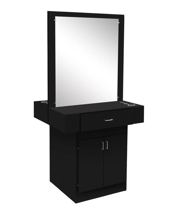 DescriptionThe Econo Double-Sided Styling Station is Made 100% in the U.S.A.to enhance its quality while also supporting local Americans who share our passion for American craftsmanship. The Econo-Double-Sided Styling Station is available in 20 popular laminates. This free standing styling station is designed to accommodate two stylists' needs in a limited work space. Each side of the Econo Double-Sided styling station features a 30" x 36" mirror, a 24" utility drawer and a large storage cabinet with an adjustable shelf. For your convenience you have the option to add customizable appliance holders to this styling station as pictured. Please call (800) 477-6655 to inquire about custom sizes and an optional lock. *Please allow 6 - 8 weeks for shipment of colors other than black.