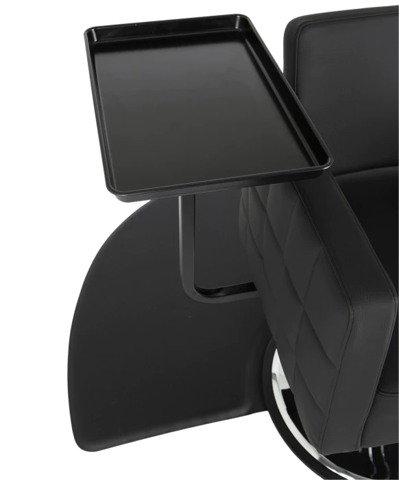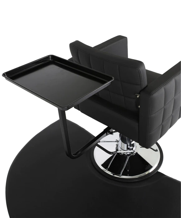 DescriptionExperience salon efficiency redefined with Boss Beauty Designs' Rotating "Elite Quick Tray." This innovative accessory revolutionizes your workspace with its seamless integration onto your styling chair's hydraulic piston. This innovative salon caddy will attach quickly to any salon chair for use during a color application, and then just as easily, it will detach for cutting and styling. The "Elite Quick Tray" attaches to an arm below the salon chair that allows the tray to swivel almost completely around the entire perimeter of the chair for unmatched convenience. This rotating salon caddy will provide easy access to your color bowls, foils, shears, rollers, and all other tools with no more reaching back & forth and no more stumbling around with a traditional tray on wheels. Enjoy unparalleled convenience as the "Quick Tray" offers a remarkable 280-degree swivel, granting effortless access to essential tools, minimizing strain, and eliminating clutter. Crafted for longevity, its durable construction ensures sustained cleanliness and efficiency without the need for wheels. Elevate your hairstyling prowess and impress clients with professional finesse. Make every salon session a seamless success with the "Elite Quick Tray" from Boss Beauty Designs.
