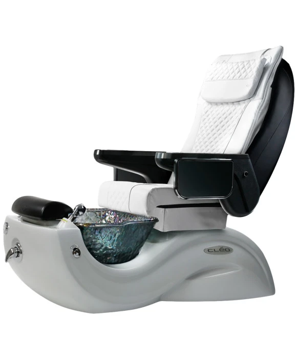 DescriptionThe J&A Cleo G5 Pedicure Spa with Glass Bowl is Made in America and features a hand-crafted fiberglass base that cradles a strong and durable glass basin. The stunning base of the luxurious Cleo G5 Pedicure Chair features a durable Infinity Pipeless Whirlpool, dual function sprayer and single handle faucet. A Technician Side Remote is an exciting new feature that makes re-positioning the client quite easy for your technicians, and they are sure to love it! This exquisitely designed pedicure spa is built for longevity and features luxurious vinyl upholstery available in 5 color options, as well as swing up/down armrests for client comfort and ease of access. The armrests offer a USB receptacle outlet and a convenient purse holder as well for added convenience. The Cleo G5 also features a multi-function electronic Shiatsu massage chair top that is easily controlled by a built-in remote on the armrest. The shiatsu chair is easy to use and provides a wide range of massage settings, allowing your client to personalize their massage style. The J&A Cleo G5 is a modern pedicure spa chair that is sure to elevate the aesthetic of your salon, all while providing an out of this world relaxing experience for your clients.