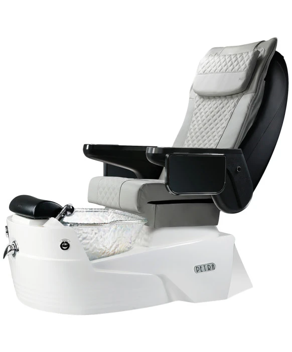 DescriptionThe J&A Petra G5 Pedicure Spa w/ Glass Bowl is Made in America and features a hand-crafted fiberglass base that cradles a strong and durable glass basin. The sleek base of the luxurious Petra G5 Pedicure Chair features a durable Pipeless Whirlpool motor, dual function sprayer and single handle faucet. A Technician Side Remote is an exciting new feature that makes re-positioning the client quite easy for your technicians, and they are sure to love it! The exquisitely designed Petra G5 chair top is built for longevity and features luxurious vinyl upholstery and comes equipped with swing up/down armrests for client comfort and ease of access. The armrests also offer two built-in USB Charging Ports and a purse hanger for customer convenience. This pedicure spa also features a multi-function electronic Shiatsu massage chair top that is easily controlled by a built-in remote on the armrest. The shiatsu chair is easy to use and provides a wide range of massage settings, allowing your client to personalize their massage style. The J&A Petra G5 is a modern pedicure spa chair that is sure to elevate the aesthetic of your salon, all while providing an out of this world relaxing experience for your clients.