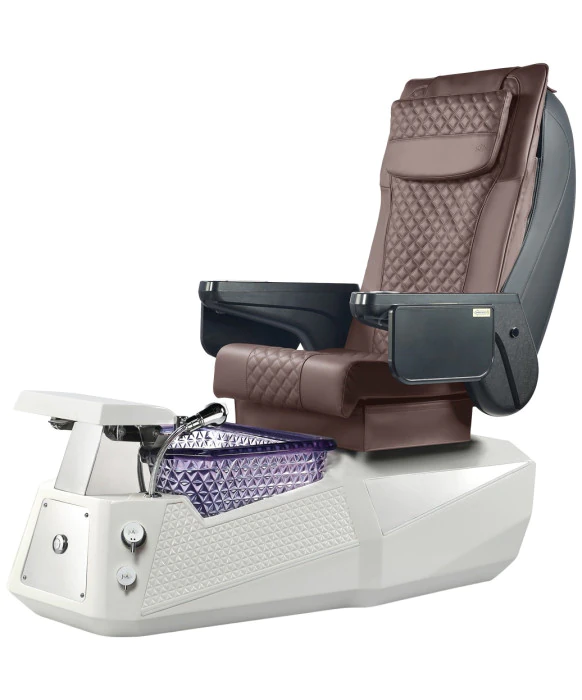 DescriptionThe Toepia DM Pedicure Chair represents the ultimate blend of elegance and comfort. Its plush, padded seat is upholstered in premium PU leather and offered in five stylish color options to complement the aesthetic of any salon or day spa. The beautifully detailed, crack-resistant crystalline bowl is available in three color choices and features a dual-function fill-and-spray hose along with a generous 5-gallon capacity. Built for strength and long-term performance, the Toepia DM base is constructed from reinforced crystalline fiber with an acetone-resistant finish, all wrapped in a sleek, modern design. Clients will enjoy a truly luxurious experience with the full-body shiatsu massage system, adjustable footrest, and foldable armrest trays complete with cupholders. On the technician side, a convenient remote control allows for effortless adjustment of the chair’s position (slide and recline), ensuring the perfect setup for every service. Whether you're enhancing the look of your space or delivering a premium client experience, the Toepia DM Pedicure Chair by J & A delivers on every level.