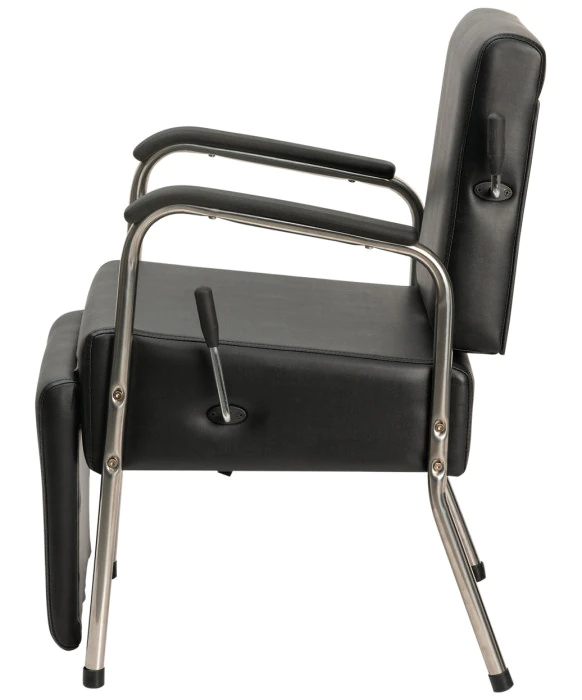 DescriptionThe Jamie Shampoo Chair is a lever controlled shampoo chair that also has a kick-out leg rest for extreme comfort. This chair has heavy duty chrome arms for added support for larger clients. The chair also comes with an extra thick seat and back for additional comfort for your client. This chair is made to last with its heavy duty, durable features, setting itself apart from other shampoo chairs