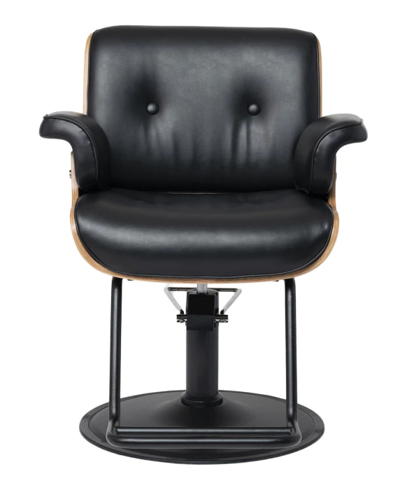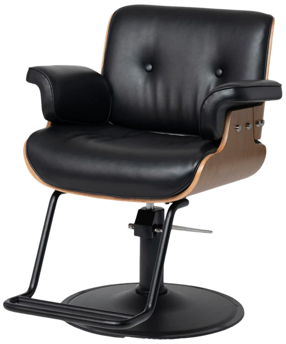 DescriptionThe Keaton Styling Chair is inspired by the Eames Lounge Chair which is one of the most famous mid-century modern pieces ever created. Its original designers, Charles and Ray Eames focused on the chair's form and functionality when creating this popular design. The Keaton Styling Chair features slightly rounded and padded arms that are covered in a smooth black vinyl and mold to any clients natural resting posture for extreme comfort. This styling chair also offers an open seating concept and a wide seating area that make it one of the most comfortable styling chairs that we offer. The exterior shell of the Keaton Styling Chair is finished with a beautiful & durable wood frame that is ready to withstand the wear and team of any bustling salon. The Keaton Styling Chair is also available with multiple base options that come with a 2-year warranty on the hydraulic pump and are fit to withstand heavier weighted clients.