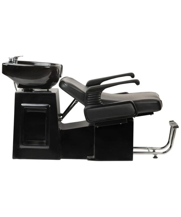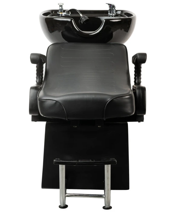 DescriptionThe Lounge Shampoo Backwash Unit is built with client comfort and total relaxation in mind. The sturdy fiberglass base, thick cushion, adjustable leg rest and extra wide arms give the Lounge Backwash its distinctive look as well as unmatched support, stability and comfort. The fiberglass base not only offers great stability, it has a built in shampoo well that keeps your bottles out of the way and your work area clutter free. The black porcelain shampoo bowl comes outfitted with a durable shampoo hose and nozzle, single lever hot & cold faucet and vacuum breaker. In order to assist with the weight of your client's head, this backwash unit features an ergonomically designed head rest with an anti-bacterial rubber cover that offers supreme support. The Lounge Backwash Unit is sure to be a favorite with your stylists and your clients.
