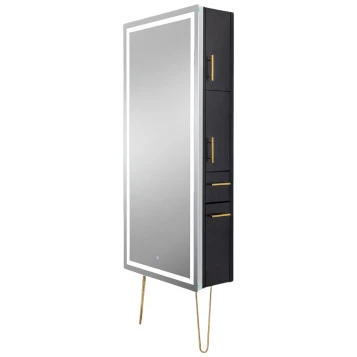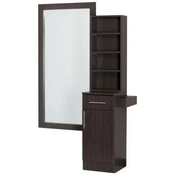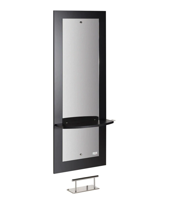 DescriptionThe Melodia Mirror Styling Station from Luca Rossini is Manufactured in Italy and is a perfect match for any high-end salon. This styling station maintains a simple and elegant design, with a rectangular lacquered black panel surrounding a similarly shaped mirror, plus a center shelf for quick product storage. This styling station also comes complete and includes a free stainless steel footrest and hairdryer holder.