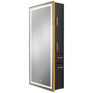 DescriptionThe Melodia Mirror Styling Station from Luca Rossini is Manufactured in Italy and is a perfect match for any high-end salon. This styling station maintains a simple and elegant design, with a rectangular lacquered black panel surrounding a similarly shaped mirror, plus a center shelf for quick product storage. This styling station also comes complete and includes a free stainless steel footrest and hairdryer holder.