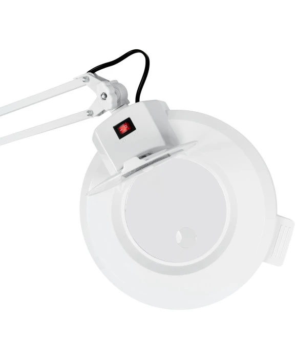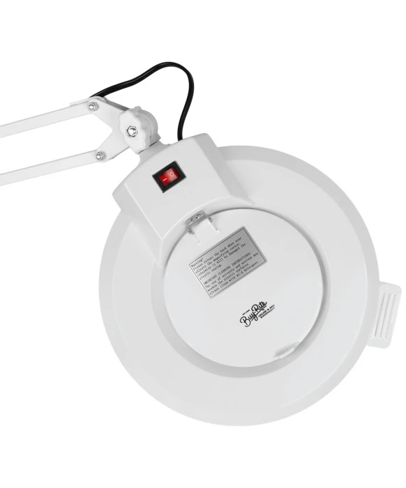 DescriptionThe Marilyn Magnifying Lamp on Casters is a 5 Diopter Magnifying Lamp that comes with both a stand and a rolling base. This lamp has a 37" extendable arm making it fully adjustable for any workspace. The base with wheels makes this lamp easy to move around the spa and very versatile. It has an on/off light switch, which also has a protective cover for added safety. When fully extended, this salon mag lamp is 6'3" at its highest point. This magnifying light is designed specifically for use in any spa or nail salon.