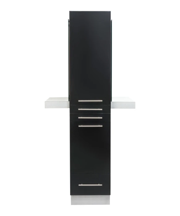 DescriptionThe Maxim Double-Sided Styling Station w/ Ledge is 100% Made in the U.S.A. and is perfect for not one, but TWO stylists! This free-standing, two-sided salon styling station ships to you fully assembled and comes complete with (2) front ledges & (2) 30" x 28" mirrors. Each side of the Maxim Double Sided Styling Station w/ Ledge is identically equipped with an upper storage cabinet, two utility drawers, storage cabinet with a slide-out tool panel to accommodate one blow dryer and two curling irons, as well as one lower drawer for additional storage! This dual sided station is designed with style and functionality in mind, and is sure to suit any salon décor! The Maxim is available in your choice of 40 laminate colors with two-tone options, so ask your Buy-Rite Beauty Sales representative today!