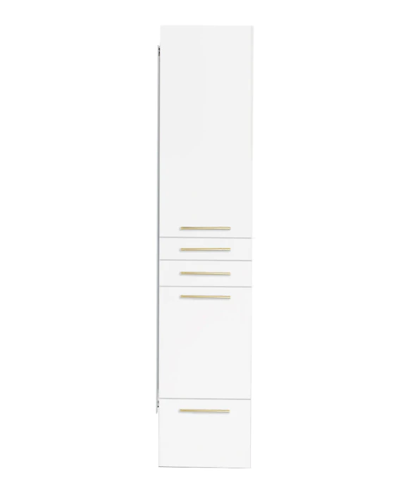 - Full Extension Glides & Brushed Gold Handles