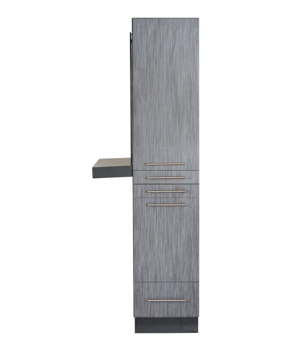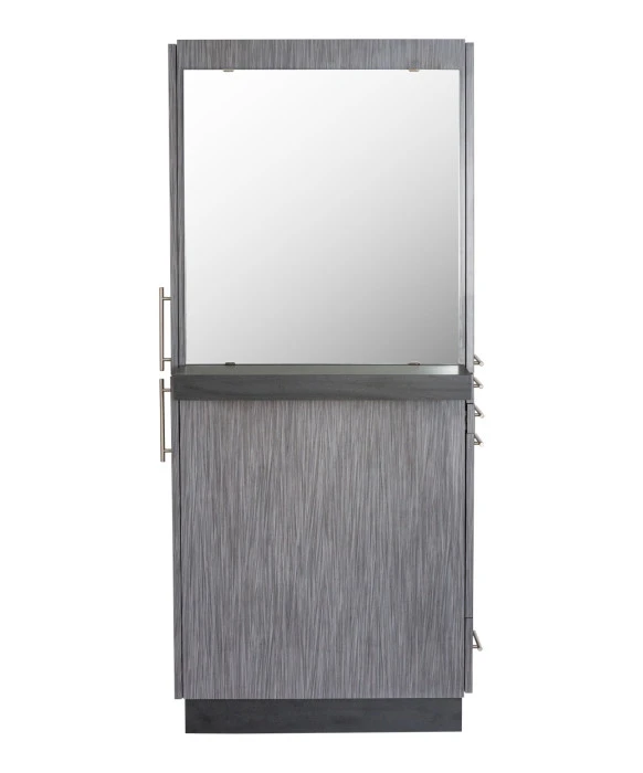 DescriptionThe Maxim Styling Station w/ Ledge is 100% Made in the U.S.A. and is built with the utmost craftsmanship found in the salon equipment industry. This free-standing salon styling station ships to you fully assembled and comes complete with a front ledge & 30" x 28" mirror. The right side of the Maxim Styling Station features an upper storage cabinet, two utility drawers, a storage cabinet with a slide-out tool panel to accommodate one blow dryer and two curling irons, as well as an extra lower drawer for additional storage! The left side of the station offers even more storage space with two large cabinets. This station is designed with style and functionality in mind, and is sure to suit any salon décor! The Maxim Styling Station is available in your choice of 40 laminate colors with two tone options, so ask your Buy-Rite Beauty Sales representative today!