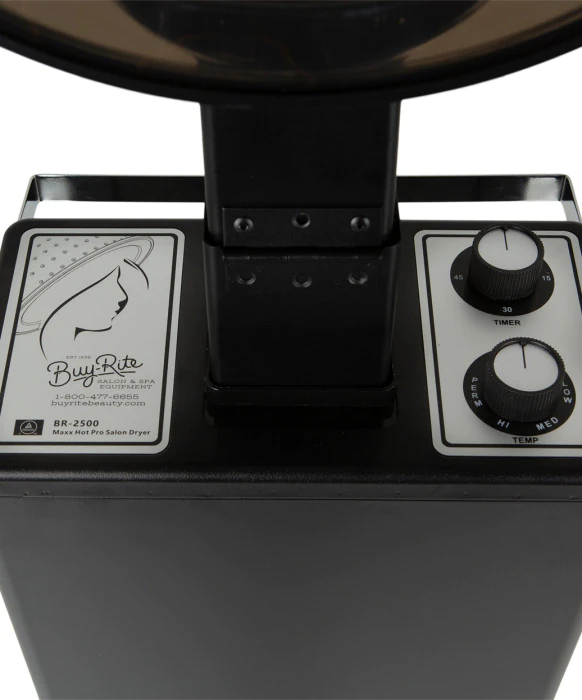 The BR-2500 MAXX Hot Professional Salon Dryer is a high-quality salon box dryer that is perfect for any professional hair stylist that is looking for high heat with dependable service. This professional salon dryer is 1100 watts, and it is extremely powerful and hot. It is complete with an adjustable timer and four setting temperature control. The dryer hood is extra-large, and the hood arm is fully adjustable to fit all your clients during all types of service. This version of the BR-2500 dryer also comes complete with the BR-2500WK wheel and handle kit that make this a mobile salon box dryer right out of the box! Thermostat Settings: Low - 85 to 90 degrees, Medium - 98 to 110 degrees, High - 115 to 125 degrees & Perm 140 degrees plus.